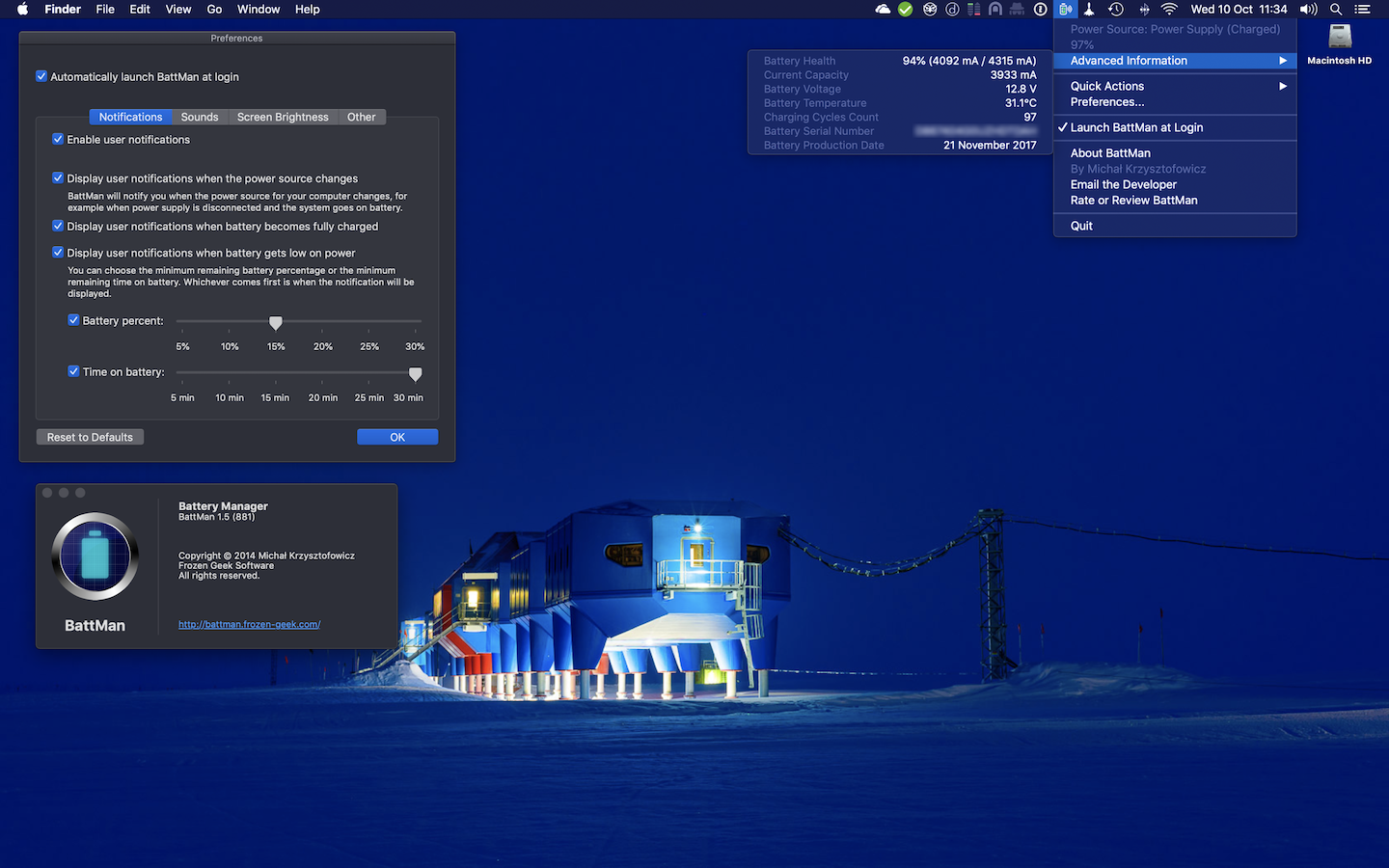 BattMan menus and windows showing: